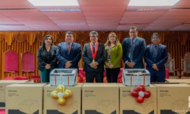 Huaraz en Línea.- El doctor Marcial Quinto Gomero, titular de la Corte Superior de Justicia de Áncash (CSJAN), ayer, entregó 11 escáneres de alto rendimiento, equipos de gama alta que fueron adquiridos con presupuesto de esta sede judicial y del Programa Presupuestal (PpR) 0067 "Celeridad de los Procesos Judiciales de Familia".