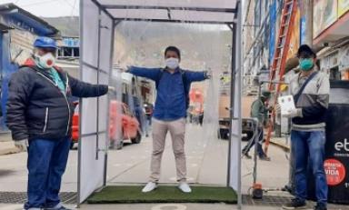 Oscar, de 23 años, estudió gracias a Beca 18 del Programa Nacional de Becas y Crédito Educativo, Pronabec del Ministerio de Educación. Él, junto con sus compañeros, siempre estaba preocupado por los contagios del COVID-19. Por eso, en abril último construyeron una cámara de desinfección financiada por ellos mismos y que pusieron al servicio de las personas en las inmediaciones del Mercado Modelo de Huánuco.