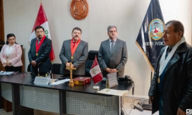 Huaraz en Línea.- El presidente de la Corte Superior de Justicia de Áncash (CSJAN), doctor Dwight Guillermo García Lizárraga, esta mañana, entregó un reconocimiento al magistrado Orlando Carbajal Lévano, juez provisional del Juzgado Transitorio Especializado en Extinción de Dominio de Huaraz.