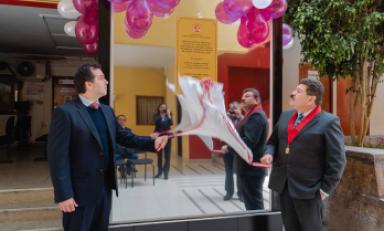 El develado y el corte de la cinta estuvieron a cargo del doctor Dwight Guillermo García Lizárraga en compañía del señor Samuel Oscar Suzanne Balbi responsable técnico del programa presupuestal 0099- “celeridad en los procesos judiciales laborales”.