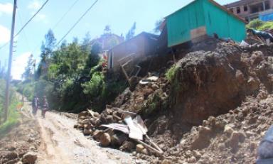 La vivienda que se vino abajo producto de las filtraciones se encuentra ubicada en el barrio de Huacrajirca que tuvo como víctima a una familia de cinco integrantes que vieron en la noche del jueves derrumbarse su habitación y su baño.