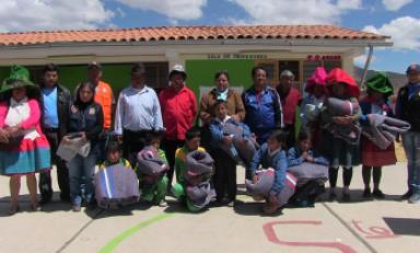 Huaraz en Línea.- La Unidad de Gestión de Riesgo y Desastre de la Municipalidad Distrital de Independencia con la presencia de la teniente alcaldesa, Reyna Huarca López y el regidor profesor César Palma Huerta, entregaron ropas abrigadoras y frazadas a los niños de la institución educativa 24 de Junio – Piruruyoc , ubicada en el centro poblado Canshan.