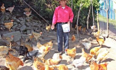 Huaraz en Línea.- Don Eleuterio Sosa, coge un puñado de maíz y deja caer los granos, al cual las gallinas se arremolinan, luego las aves van a los bebederos. Todas las mañanas y por las tardes, recoge los huevos, una parte para la alimentación de la familia y el resto para la venta, lo ofrecen en canastas al pie del camino.