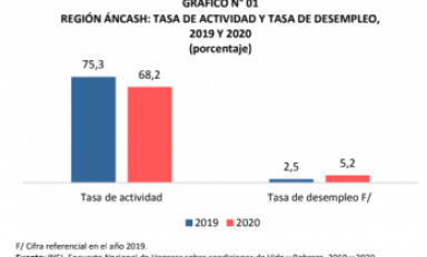 Huaraz en Línea.- En el año 2020, la población ocupada en la región Áncash disminuyó en 11,2% (-71 mil 521 trabajadores), respecto al año 2019.