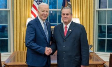 Del mismo modo, en la carta de presentación del embajador Ferrero, se resaltó la importancia de fortalecer las relaciones bilaterales con los mecanismos de diálogo político y los acuerdos que existen entre nuestras naciones. También se reafirmó su deseo de constituirse en un interlocutor confiable desde la embajada de Perú, a efectos de avanzar en los diversos aspectos de interés común como son la seguridad, la promoción del comercio y las inversiones, la sostenibilidad ambiental y el intercambio cultural. Biden felicita a Perú En una comunicación formal entregada en la ocasión por el presidente Biden, el mandatario estadounidense reconoció y felicitó a Perú por ser “una fuerza de liderazgo regional”, por “su compromiso con los valores democráticos”.