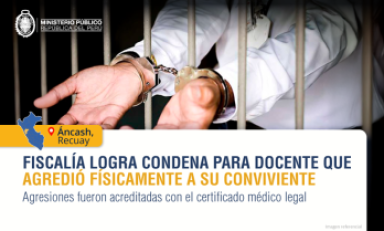 Huaraz en Línea.- La Fiscalía Provincial Especializada en Violencia contra las Mujeres y los Integrantes del Grupo Familiar de Recuay, distrito fiscal de Áncash, logró sentencia condenatoria contra un docente por el presunto delito de violencia física en agravio de su conviviente.