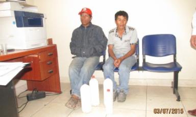 A estas personas se les encontró en posesión 28 litros de látex de opio, debidamente acondicionados en botellas plásticas en circunstancias que pretendía comercializar en el interior de un ómnibus de la empresa de transporte interprovincial Sandoval, de placa de rodaje A7J-953, que se encontraba estacionado sin pasajeros en la intersección de la avenida Confraternidad Internacional Oeste.