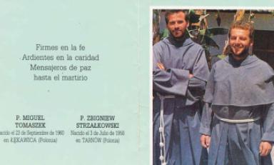 Los sacerdotes Zbigniew Adan Strzalkowski y Miguel Tomaszek, ambos de nacionalidad polaca, pertenecían a la Congregación de Franciscanos Conventuales de la provincia de San Antonio de Cracovia Polonia, enviados como misionero de la Congregación Franciscana al pueblo de Pariacoto en Ancash.