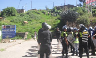 Huaraz en Línea.-Con el despliegue de un gran número de efectivos policiales y la presencia de autoridades municipales, hoy se procedió al desalojo de 4 familias de la parte alta del sitio arqueológico de Pumacayán, ubicada en la ciudad de Huaraz.