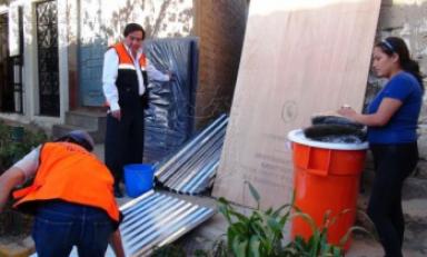 La entrega consistió en 15 planchas de calamina, frazadas polar, planchas de triplay, colchones de espuma, cuchillo de cocina, baldes, bidones, platos, cucharones y espumaderas.