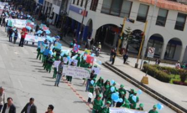 Huaraz en Línea.- Delegaciones de las instituciones educativas participaron en las celebraciones por el Día Mundial del Agua, portando pancartas alusivas a la fecha.