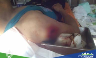 Huaraz en Línea.-Policía municipal de la Municipalidad Provincial de Huaraz fue acuchillado por un comerciante informal en el Jr. 27 de Noviembre de la ciudad de Huaraz, recibiendo cortes en el hombro y brazo derecho.