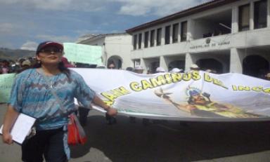 La marcha de protesta se inició en la plazuela de Belén desde donde partió con destino a la sede del gobierno regional como protesta por la actitud asumida por los funcionarios del proyecto Chinecas.