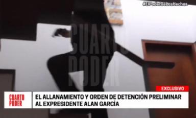Cuarto Poder difundió un video, sin sonido, donde se observa por segundos a García Pérez subir las escaleras con un arma en la mano, luego que fuera informado de la diligencia en cumplimiento de una orden judicial.