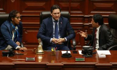 Acompañan a Salaverry en la Mesa Directiva la congresista Leyla Chihuán Ramos (FP), primera vicepresidenta; Segundo Tapia Bernal (FP), segundo vicepresidente, y Yeni Vilcatoma de la Cruz (FP), tercera vicepresidenta.