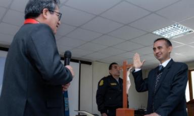En otra ceremonia protocolar, hoy, el presidente de la CSJAN, doctor Marcial Quinto Gomero, prestó juramento como integrante de la Plataforma de Defensa Civil del Gobierno Regional de Áncash (GRA).