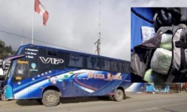 Los agentes de la Comisaría de Cajacay, en la provincia ancashina de Bolognesi, intervinieron el bus de la empresa Santa Rosita, en el que se trasladaba el cargamento de droga.