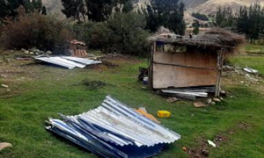 En el distrito de San Juan, provincia de Sihuas, los vientos fuertes ocasionaron el desprendimiento de las coberturas (calaminas) de las viviendas de material rústico en las localidades de Colcabamba, Villegas y Chinchobamba.