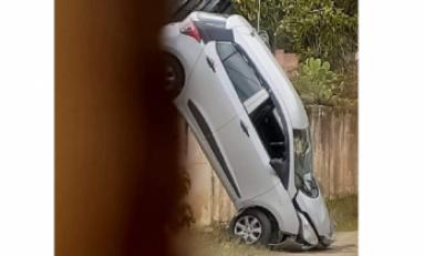 Huaraz en Línea. - Un joven realizó una mala maniobra cuando realizaba su prueba de manejo en la ciudad de Huaraz y cayó con su vehículo a un barranco.
