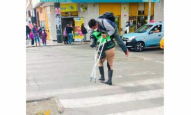 En la imagen se aprecia al ejemplar policía cargando a un hombre que usaba muletas para que pueda cruzar la vía.