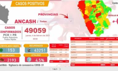 Según las estadísticas, en la región Áncash de sus 166 distritos, 153 se han infectado, 2 mil 193 personas perdieron la vida y la letalidad de la pandemia es de 4.5 por ciento. (Redacción Central)