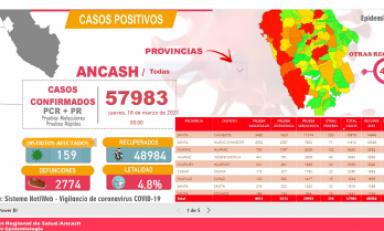 De los 166 distritos de Áncash 159 se han infectado, 2 mil 774 pacientes fallecieron y la letalidad es de 4.8 por ciento.