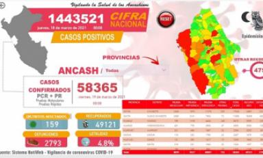 La DIRESA informó también que en Áncash se han contagiado 58 mil 365 personas, de las cuales 49 mil 121 se han recuperado de la terrible enfermedad. De sus 166 distritos, 159 se han infectado y la letalidad es de 4.8.
