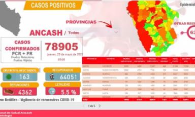 Aunque según las últimas cifras, en Áncash el virus ha cobrado la vida de 4 mil 362 pacientes, se han infectado 163 de sus 166 distritos y la letalidad de la pandemia es de 5.5 por ciento.