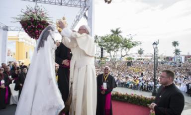 Como se recuerda, Trujillo acogió con mucha alegría la llegada del Papa Francisco el sábado 20 de enero del año pasado. La feligresía se abrazaba y se alegraba ante la emoción de ver al Papa en este pueblo norteño junto a muchas imágenes religiosas, que llegaron de todas parte del Norte del Perú”. El Santo Padre presidió, a las 10:00 de la mañana una Solemne Misa en la explanada del balneario de Huanchaco y, en horas de la tarde, coronó a la Virgen de la Puerta de Otuzco, en la Plaza de Armas, frente a un mar humano de fieles, congregados de esquina a esquina en este céntrico espacio de la ciudad.