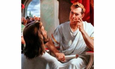 Jn 18,33-37: nos presenta el juicio de Jesús ante Pilato, representante del imperio romano, quien le pregunta ¿Eres tú el rey de los judíos? (v.34). Jesús hace una clara diferencia entre su reino y los reinos de este mundo que se basan en el poder, la opresión, la injusticia y la muerte contra los inocentes; cuyo poder está en la fuerza de las armas. Su reino es vida, justicia, verdad, paz, reconciliación, amor, respeto por los derechos fundamentales de todo ser humano. Su relación es horizontal rey maestro y discípulos. El romano y los imperios sucesivos son verticales: dominadores y súbditos. El reino de Jesús exige unidad y coherencia de vida, verdad, testimonio, transparencia de vida.