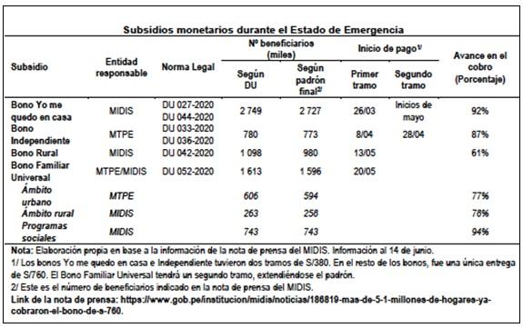 Perú solo se entregado un bono de 760 soles para el primer mes de la cuarentena, mientras que los otros países lo han entregado varias veces. Debe por lo tanto, entregarse tres bonos más para compensar a la población por el aislamiento obligatorio por la cuarentena.