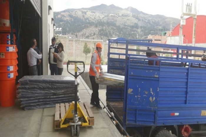 La ayuda humanitaria partió del almacén de avanzada del Gobierno Regional de Áncash y consistió en camas plegables, colchones, frazadas, bobinas de plástico, implementos de cocina y menaje.