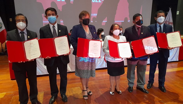 También recibieron sus credenciales los catedráticos Gilbert Rodríguez Paucar y Romy Kelly Mas Sandoval para asumir los vicerrectorados de Investigación y Académico, respectivamente.