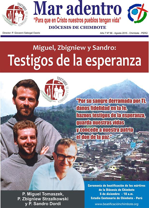 El Padre Miguel, Zbigniew y Sandro fueron y son testigos de Cristo, han dado testimonio de Jesús, razón y ser de sus vidas. Ya Orígenes nos decía: "Todo el que da testimonio de la verdad, bien sea con palabras o bien con hechos o trabajando de alguna manera en favor de ella, puede llamarse con todo derecho: testigo". Ellos, mártires de la Diócesis de Chimbote, son testigos de la verdad, del evangelio, testigos de la vida, del amor y el amor es Dios. Por lo tanto, son testigos de Dios.