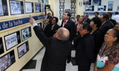 Las autoridades universitarias encabezadas por el rector, Julio Poterico Huamayalli, invitaron a los luchadores a develar la placa de homenaje y posteriormente a la inauguración de la muestra fotográfica Unasam: 40 años de historia, en la que se exhibe una reseña gráfica de la vida institucional de la primera casa superior de estudios de Áncash.(NP)