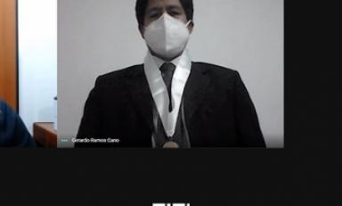 En una breve ceremonia virtual, esta mañana, la doctora María Isabel Martina Velezmoro Arbaiza, jueza decana de los Jueces Especializados y/o Mixtos del Distrito Judicial de Áncash tomó juramento al doctor Eliseo Basilio Cochachin Mautino como juez supernumerario del Juzgado de Paz Letrado de Huari.