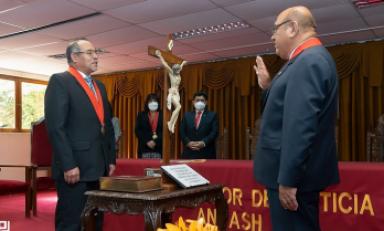 Huaraz en Línea.- El doctor Armando Marcial Canchari Ordóñez, presidente de la Corte Superior de Justicia de Áncash (CSJAN) tomó juramento al doctor Raúl Serafín Rodríguez Soto como jefe de la Oficina Desconcentrada de Control de la Magistratura (ODECMA) de esta sede judicial para completar el periodo 2022.