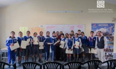 La actividad denominada “Formación, Capacitación y Juramentación de Jueces de Paz Escolares del Distrito Judicial de Áncash”, congregó a alumnos de las Instituciones Educativas 2 de Mayo y Micelino Sandoval Torres (Caraz); Santa Inés y Santo Domingo de Guzmán (Yungay) y Nuestra Señora de las Mercedes y María Auxiliadora (Carhuaz).