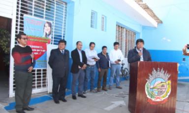 Acompañado de sus funcionarios hizo entrega del primer paquete de tres, constituido por veintiocho proyectos de mantenimiento a los alcaldes de los centros poblados con sus respectivos comités de gestión, por un monto de inversión de más de seiscientos mil soles provenientes del canon minero.