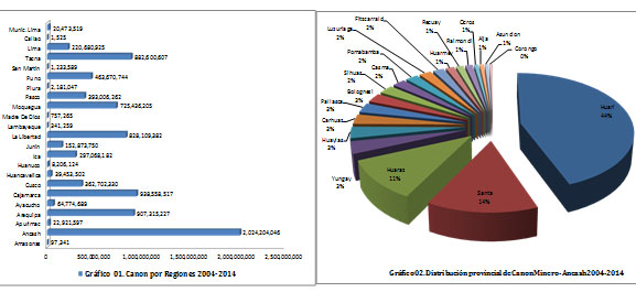 Entre los años 2004 y 2014 el departamento de Áncash , fue la región que mayor monto por Canon Minero recibió a través de las transferencias del Gobierno Central, alcanzando un poco más de S/. 8,480,912,184.