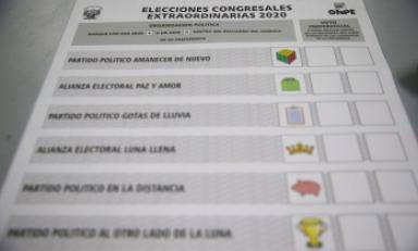 También aparece impresa la instrucción al elector: “Marque con una cruz (+) o un aspa (x) dentro del recuadro del símbolo de su preferencia”. Para el caso del voto preferencial, la instrucción señala: “Si desea coloque dentro de los recuadros uno o dos números de los candidatos de su preferencia”.