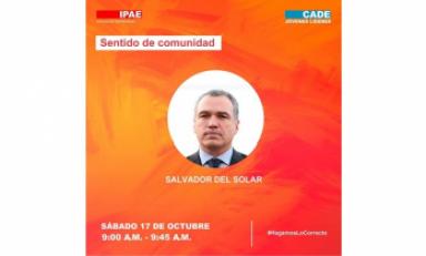 Huaraz en Línea.- Del próximo 15 al 17 de octubre, IPAE Asociación Empresarial llevará a cabo la primera edición de #CADEjóvenes Líderes, spinoff de CADE Universitario. Esta nueva propuesta busca congregar a los jóvenes para inspirarlos, con el objetivo de integrar ideas para que ellos puedan ser parte de la construcción de un Perú desarrollado. Para lograr este objetivo, es fundamental conversar sobre la construcción de comunidad y cómo mediante esta se puede convertir la incertidumbre en una oportunidad. Por ello, el próximo sábado 17 de octubre se contará con la exposición de Salvador del Solar y Christian Bush, profesor de la Universidad de New York.