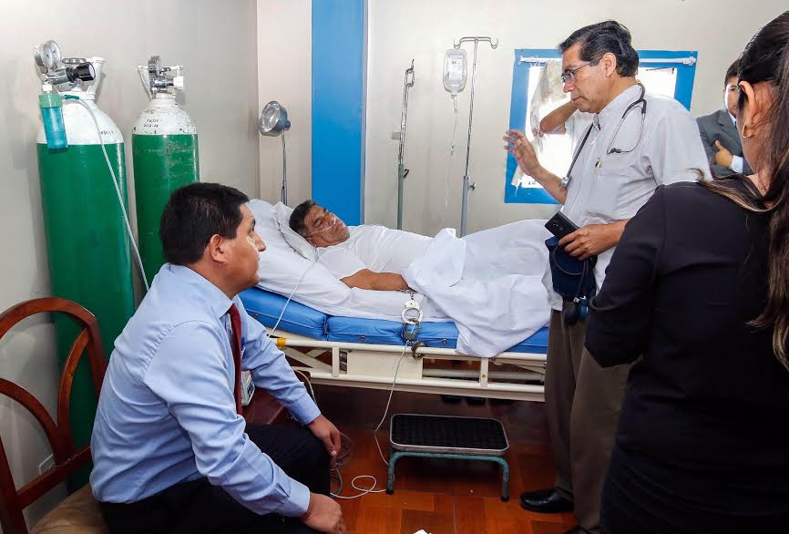 En primer momento, la audiencia se iba a desarrollar al interior de la habitación que ocupa Reyes Roggero, en la clínica San Pablo, pero debido a que el médico que lo atiende argumentó que su presión se encontraba elevada, el magistrado Eudosio Escalante Arroyo, decidió realizarla en la sede central.