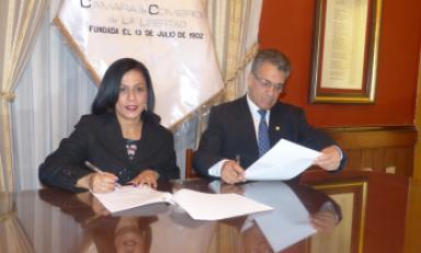 Perú en Línea y Cámara de Comercio de La Libertad sellan alianza con firma de convenio