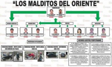 En operativos en Huaraz y Lima fueron detenidos los cabecillas Vanessa Macedo Arrué y Percy Díaz Pérez, así como a Kenlli Mota Obregón, Jimmy Reátegui Vásquez, Carlos Macedo Arrué y Ángel Tuanama Zomba.