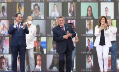 En un discurso que fue precedido por un acto litúrgico por los 19 años de APP, Acuña dijo estar muy orgulloso de representar a su partido en las elecciones y hacerlo de la mano de la capacidad y experiencia que representan los miembros de su plancha presidencial”.