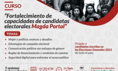 El propósito del denominado “Curso de fortalecimiento de capacidades de candidatas electorales Magda Portal” es proporcionar las estrategias de comunicación política, organización de campañas electorales y rendición de cuentas, así como seguridad digital para prevenir situaciones de acoso político.