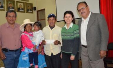 José Moreno Osorio, alcalde encargado de la Municipalidad Provincial de Huaylas, en compañía del regidor Roger Torres Alegre, hicieron la entrega del cheque al señor Dionicio Gavino Dolores (padre de la niña) de la suma de 3,426.00 nuevos soles para que la niña sea operada en la ciudad de Huaraz y posteriormente reciba el tratamiento correspondiente para su recupración.
