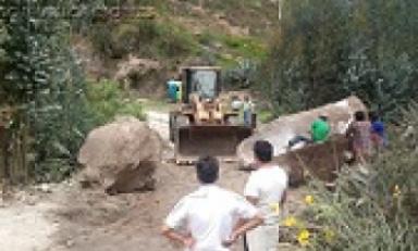 Huaraz en Línea.- La Municipalidad Provincial de Huaylas llevó ayuda con maquinaria pesada a los pobladores del caserío de Llacshu y los alrededores que quedó interrumpido por el deslizamiento de piedras, causado por el mal riego de cultivo por parte de agricultores de la zona.