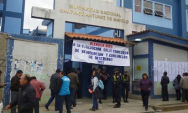 La mayor parte de los profesores de la zona sierra se concentran en el local de la ciudad universitaria de Shancayán hasta donde llegó el Director del INEI Huaraz, Lorenzo Ramírez Bojorquez para supervisar la aplicación de la evaluación docente.